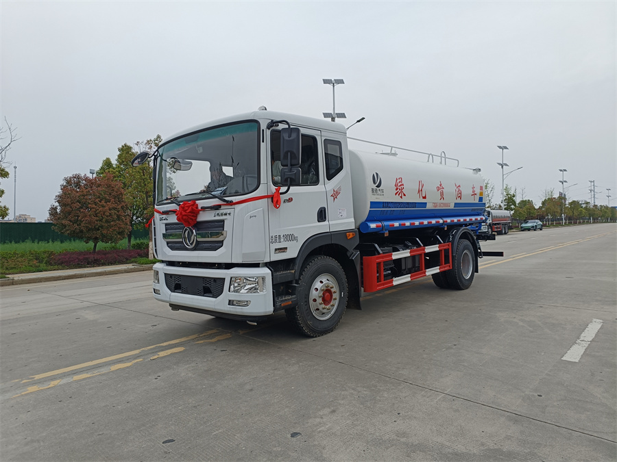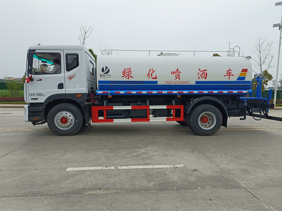 我公司產品標配前噴(鴨嘴)、后沖、后灑、側噴、后置式工作 平臺,平臺上配置綠化水炮(可 360°旋轉,既可以調成柱狀,也可 以調成霧狀,更可以調成直沖狀、大雨、中雨、小雨、毛毛雨),配 備優質大功率專用灑水泵(可自吸自排,可從河里或池塘抽水到罐體), 取力器,雜物過濾網,消防接口,自流球閥系統、取力器、球閥、濾網 均為國家標準產品,主管道加粗,法蘭墊、法蘭盤加厚,大通徑球閥。 整體具備性能優良安全可靠、效率高、流量大、維修方便等特點