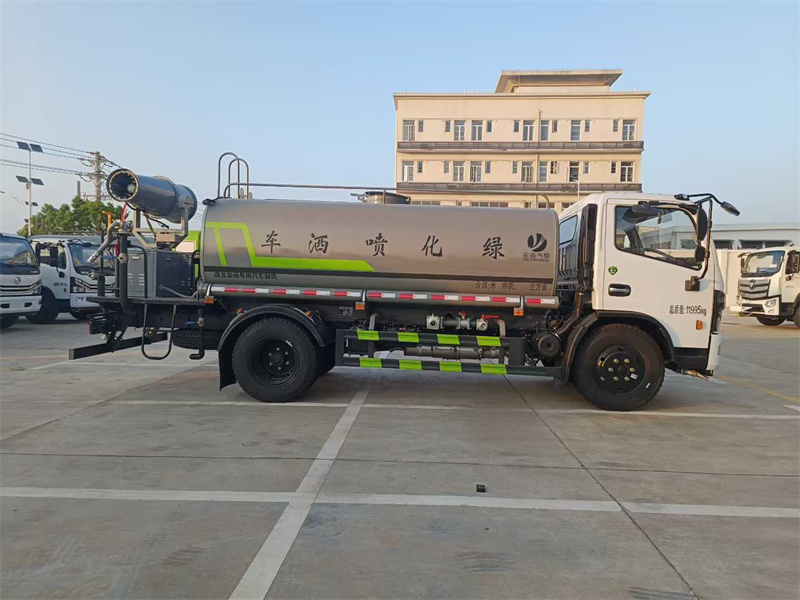 我公司產品標配前噴(鴨嘴)、后沖、后灑、側噴、后置式工作平臺,平臺上配置綠化水炮(可 360°旋轉,既可以調成柱狀,也可以調成霧狀,更可以調成直沖狀、大雨、中雨、小雨、毛毛雨),配備優質大功率專用灑水泵(可自吸自排,可從河里或池塘抽水到罐體),取力器,雜物過濾網,消防接口,自流球閥系統、取力器、球閥、濾網均為國家標準產品,主管道加粗,法蘭墊、法蘭盤加厚,大通徑球閥。整體具備性能優良安全可靠、效率高、流量大、維修方便等特點。 二.產品配置